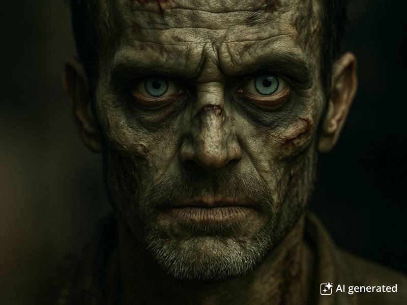 Frankenstein szörnyeként, zombiként, vagy például egy gonosz, mocsári